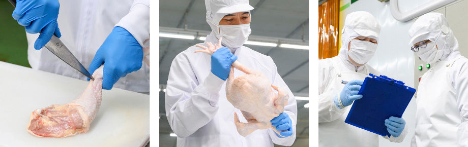 そして鶏マイスターが人の手で丁寧においしさを引き出し、朝挽きの鮮度とうまみを閉じ込める独自の冷凍技術でお届けする。